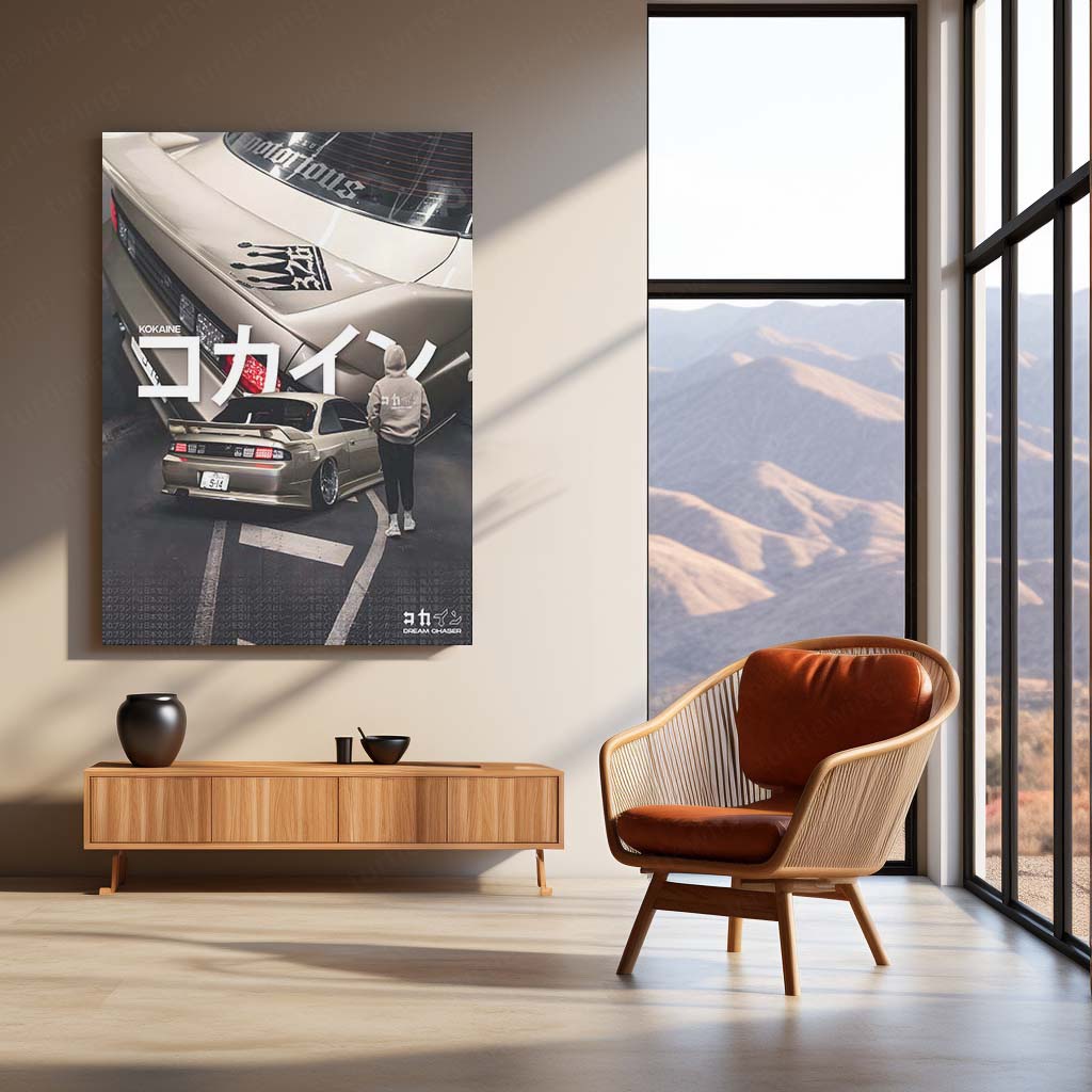 Car Metal Poster | Nissan Silvia S14 – Dream Chaser Edition | JDM Night Street Metal Frame | Japanese Car Culture Wall Art