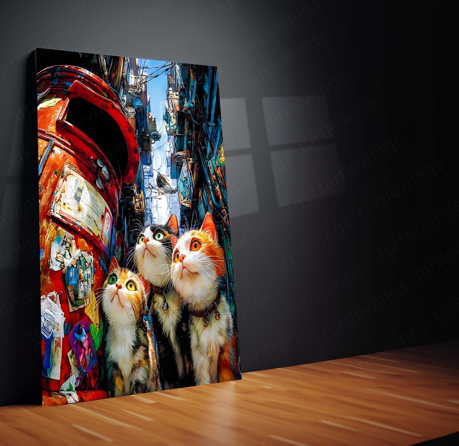 Cat in Dirty Town – Noir Night Wanderer | Cinematic Urban Cat Metal Frame Poster