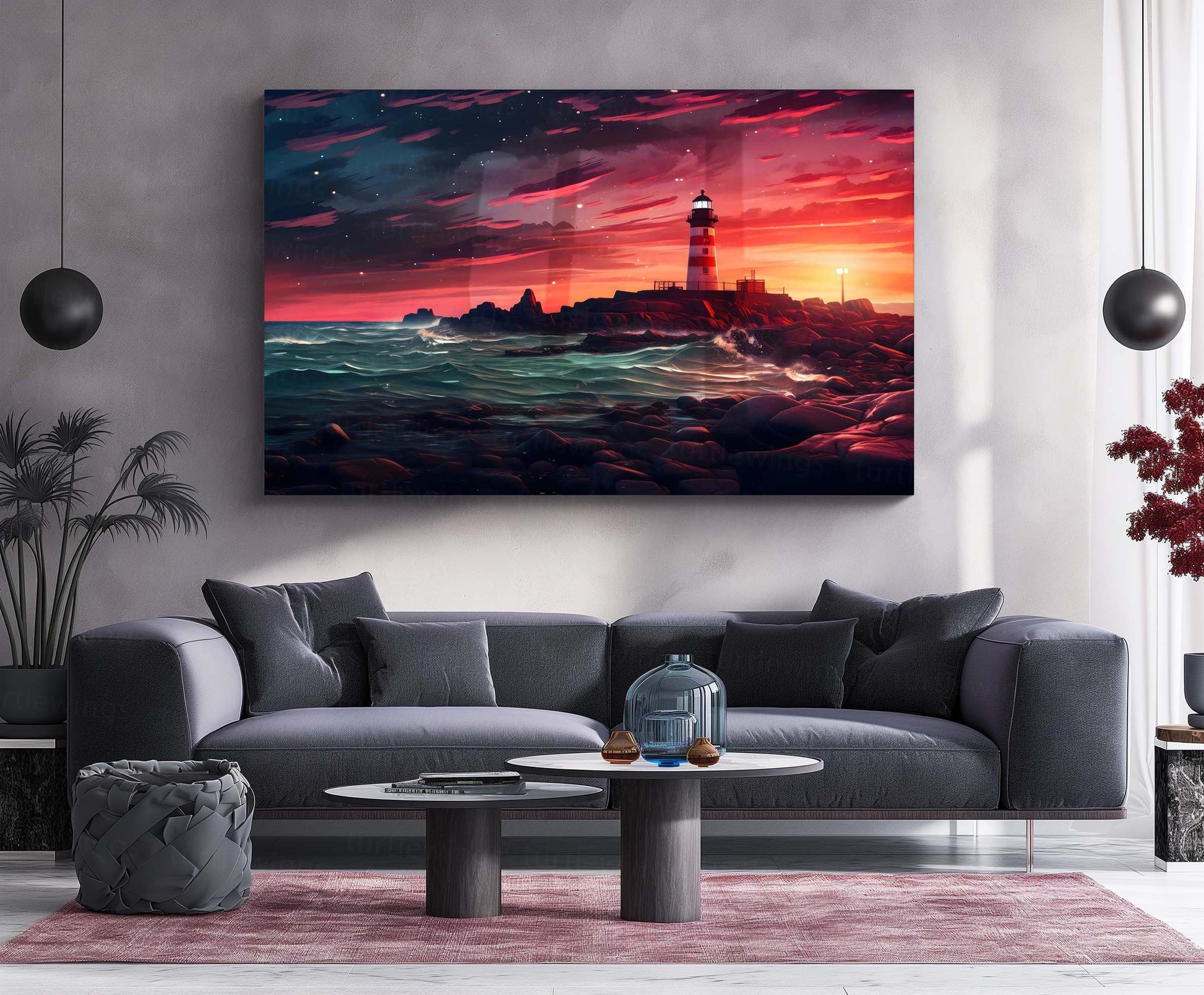 Lighthouse Sunset Ocean Metal Poster | Serene Coastal Wall Art