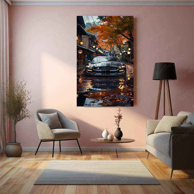 Mustang Car & Nature Metal Poster | Classic Muscle Car Scenic Wall Art | Automotive Aesthetic Decor
