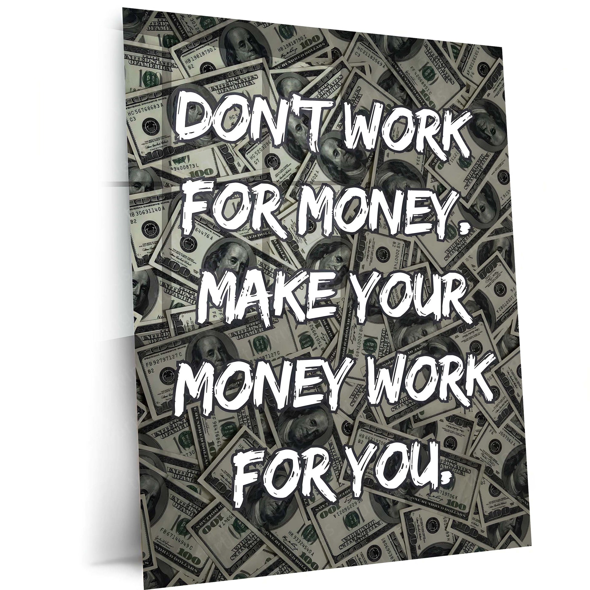 Quote Metal Poster | Make Your Money Work For You | Financial Freedom Metal Frame | Money Motivation Wall Art